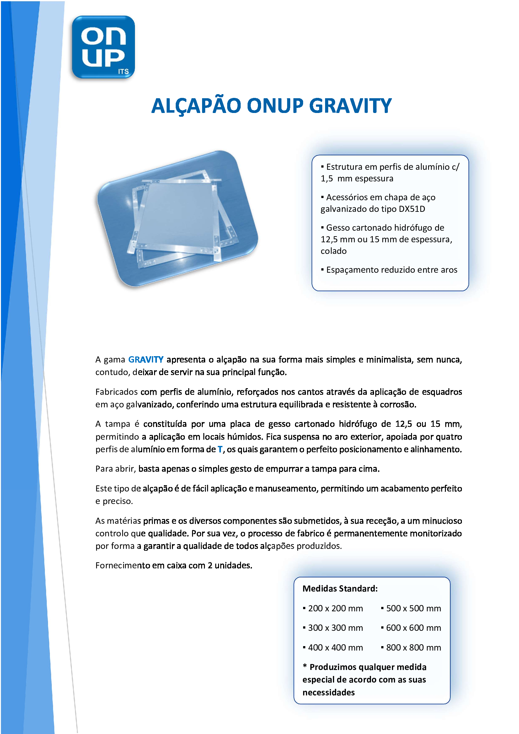 A gama GRAVITY apresenta o alçapão na sua forma mais simples e minimalista, sem nunca, contudo, deixar de servir na sua principal função.